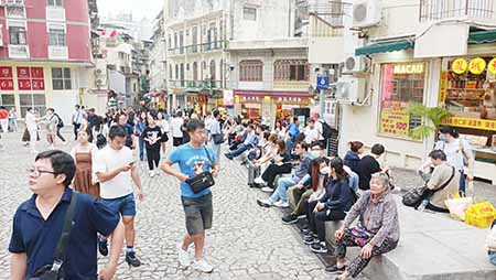 昨日大三巴、官也街等旅遊區一帶人流眾多。有手信店負責人稱,重陽假期這幾天人流較多,顧客人均消費三百元,生意較國慶黃金周好些,由於黃金周一度實施人潮管制,影響旅客的購買意慾,並且展望下月(十一月)舉辦大賽車及美食節等盛事,能吸引更多旅客訪澳及帶動生意;有小食店店員反映,重陽節正日人流稍減,剛過去的週六及週日銷情反而較好,可能由於市民選擇外遊。
