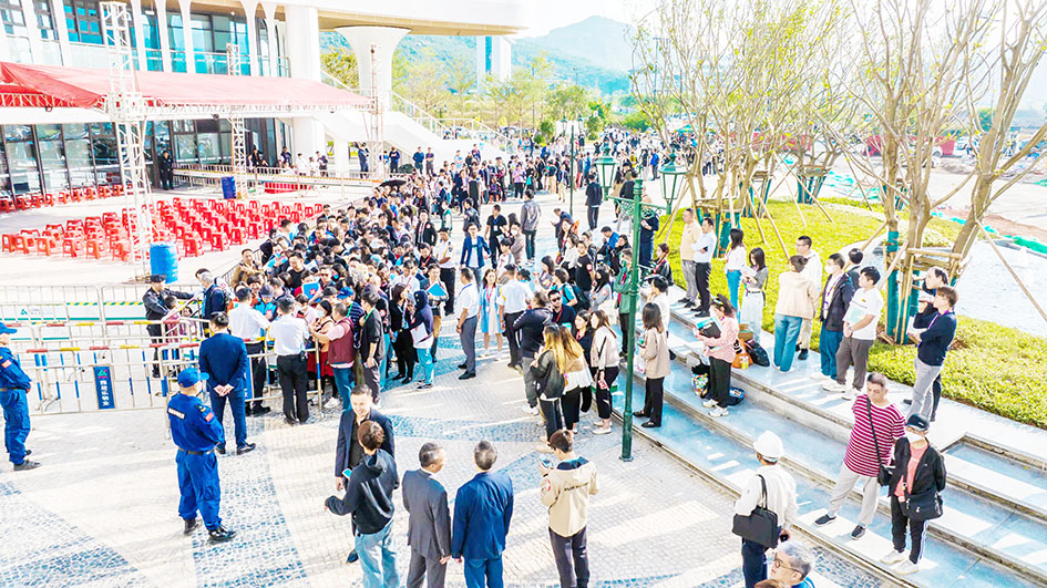 【特訊】橫琴「澳門新街坊」住宅單位昨日上午九時開始接受認購,現場排隊人潮熙來攘往,秩序良好;都更公司表示,首日截至下午三時,線上線下合共收到逾五百份申請,市場反應相當踴躍。