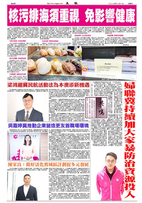 日本八月排放福島核污水出太平洋,事件引起國際重視及抨擊,不過民間對事件態度呈兩極化趨勢。被形容為慢性謀殺的福島排污計劃為期三十年,根據有關研究機構預料,核廢水污染在兩年內就會污染到我國大部分沿海地區。內地、香港以及本澳在日本公佈排放核廢水後,即時宣佈禁止進口日本福島及東京等十個都縣的水產品、蔬果、奶製品、海鹽及海藻等。本澳更一度出現「盲搶鹽」情況,部分巿民誤信謠言到超巿搶購食鹽,令到食鹽一度短缺,後經過政府及供應商的澄清後才解決了搶購問題。