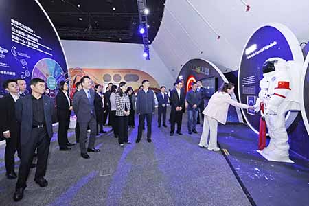 中國載人航天工程代表團昨日在社會文化司司長歐陽瑜、中聯辦副主任嚴植嬋、教育及青年發展局局長龔志明、中聯辦教育與青年工作部部長李雪飛、辦公廳副主任劉強等陪同下參觀科學館,當中包括天文館、北斗衛星系統科普國際實驗室、數據科學廳、中國科學家精神展廳、《逐夢蒼穹 探索深海—中國航天航海科技薈澳》科普展覽等。