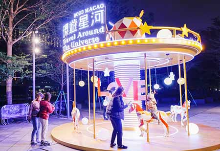 新口岸填海區–澳門科學館前地的“夢幻木馬”:以靈動飛馬和“LOVE”字母組成的旋轉木馬,跟隨旋轉木馬飛躍一起出發。
