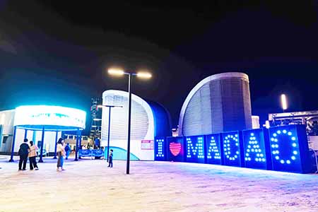 下環區–媽閣交通樞紐地面層廣場的互動裝置“願望之環”:360度的螢幕裝置兼備打卡互動模式,完成後上載到“願望之環”許願,為新一年帶來新的願景。