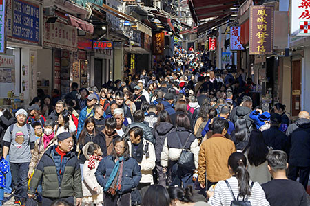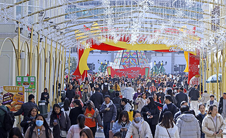 聖誕節,大三巴一帶人流湧湧,氣氛熱鬧。官也街多間食店、手信店亦大排長龍,,有警員在路口協調交通;在龍環葡韻舉辦的冬季花卉展受歡迎,不少人一家大細到場賞花、拍照;金光大道特色建築也是不少旅客的打卡熱點。有內地旅客表示,澳門有不少特式建築和景色值得遊覽,但感覺路氹區聖誕佈置不多,聖誕氣氛沒想像中濃烈;亦有旅客稱,很喜歡澳門人文風情和休閒氣息,指出一年遊澳「好幾次」。