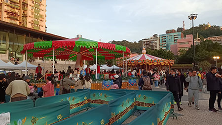 福隆新街步行區,已換上聖誕主題裝飾,街口設有多個文創市集。有賣茶飲的檔主稱,現場氣氛人流不錯,但飲品銷情一般;賣手作的檔主則稱,銷情較預期理想,希望本澳未來增加市集活動;而賣香皂的檔主則希望可在正街擺攤,相信效果會更好。