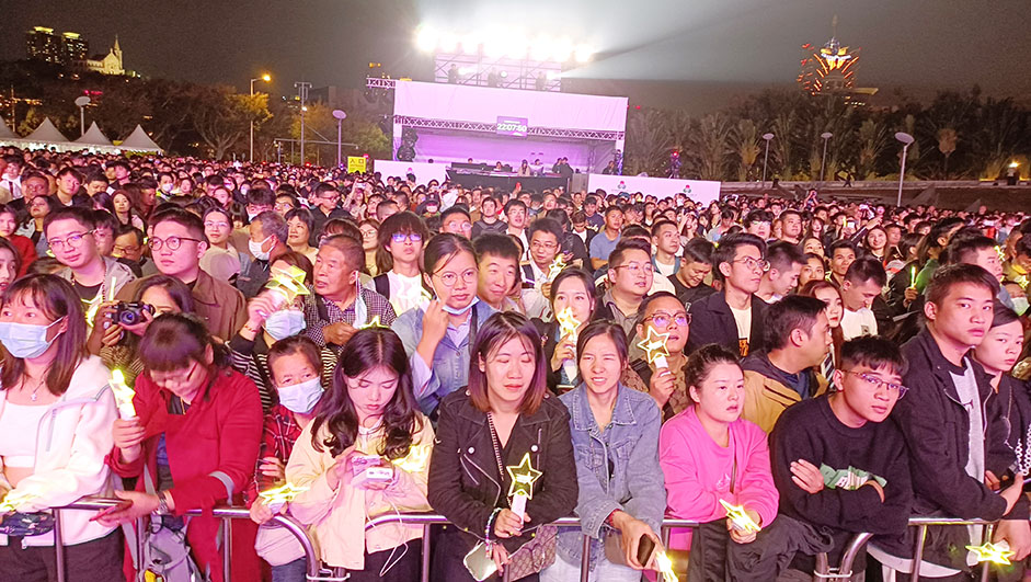 昨晚是二零二三年除夕夜,過去三年由於疫情,為避免人群聚集,由政府部門及社團機構所舉行的倒數活動,都需要停辦,隨著疫情減退,通關措施放寬,社會逐步恢復正常,今年各類大型活動亦恢復舉行。其中由文化局主辦的澳門除夕倒數演唱會昨日晚上十時至零時十分在西灣湖廣場舉行,昨晚天氣良好,氣温和暖,不少市民及旅客到場參與,由於現場實施交通管制,入場人士均要由何鴻燊博士大馬路徒步進入西灣湖廣場,沿途有警員維持秩序,並且有大屏幕直播場內演出,秩序良好。