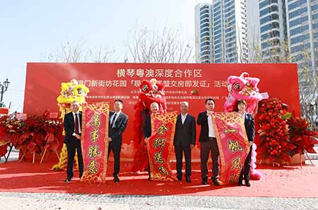 橫琴粵澳深度合作區澳門新街坊花園「現房首簽暨交房即發證」活動儀式由橫琴粵澳深度合作區執行委員會作為指導單位,橫琴粵澳深度合作區城市規劃和建設局、珠海市不動產登記中心、國家稅務總局橫琴粵澳深度合作區稅務局、廣東省珠海市橫琴公證處主辦,珠海橫琴澳門新街坊發展有限公司承辦,為澳門新街坊首批業主提供便捷高效的一站式網簽、繳稅、辦理房產證及公證委託等服務,大幅降低多重手續的時間成本,認購業主完成手續後可即場拿取新房鑰匙,首批業主由遞交申請到取得房產證僅需約六周。此外,為慶祝首批澳門新街坊業主順利交房,現場舉行「砸金蛋」抽獎環節,為業主入伙送上祝福。