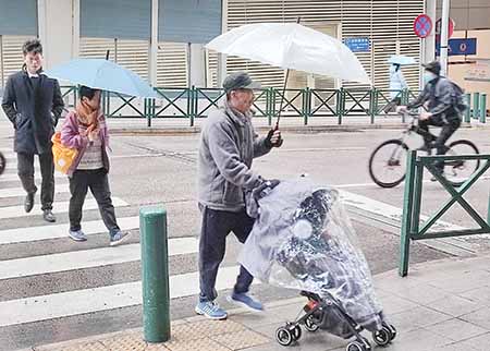 冷鋒來襲,昨日早上天氣寒冷有雨,不少家長陪同子女上學時,除了穿上厚厚大衣外,也要撐起雨傘,以免淋濕着涼,有家長表示,氣溫驟降,立刻為子女穿上外套,亦為小朋友準備手套;亦有家長表示,擔心小朋友會流感,所以他穿了共五件衣服,學校這兩天容許同學穿自己的外套,冷的時候可以穿自己的外套入校,學校亦提醒這幾天天氣冷要多穿衣服。