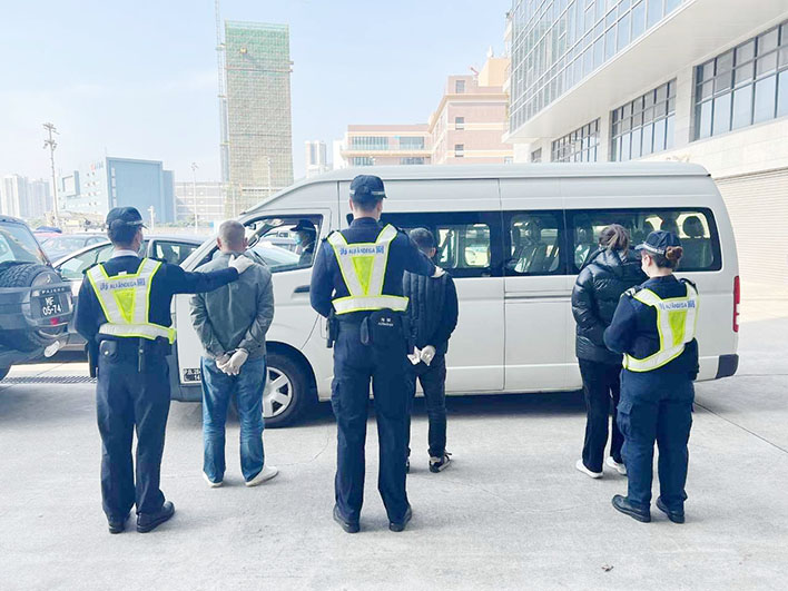 上述6名涉案人士(5男1女)為內地居民,年齡介乎27至54歲。其中3名協助偷渡男子涉嫌觸犯「協助非法出入境及非法逗留」罪;另外3名非法入境人士(2男1女)正處於禁止入境澳門期間,涉嫌觸犯「不經出入境管控入境」罪,海關將6名涉案人士移交司法機關審理。經審理後,3名協助偷渡活動男子因觸犯「協助非法出入境及非法逗留」罪被採取羈押措施。另外,3名非法入境人士中,1名男子因被判處8個月徒刑而被移送懲教管理局處理;另2名非法入境人士(1男1女)被移送治安警察局處理。