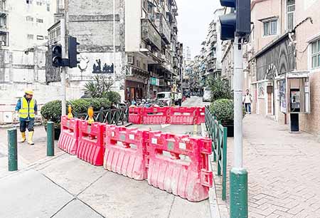 下環街近河邊新街昨日(二十五日)起封閉交通,周邊實施臨時交通安排,以配合內港南雨水泵站及下水道二期工程推進。