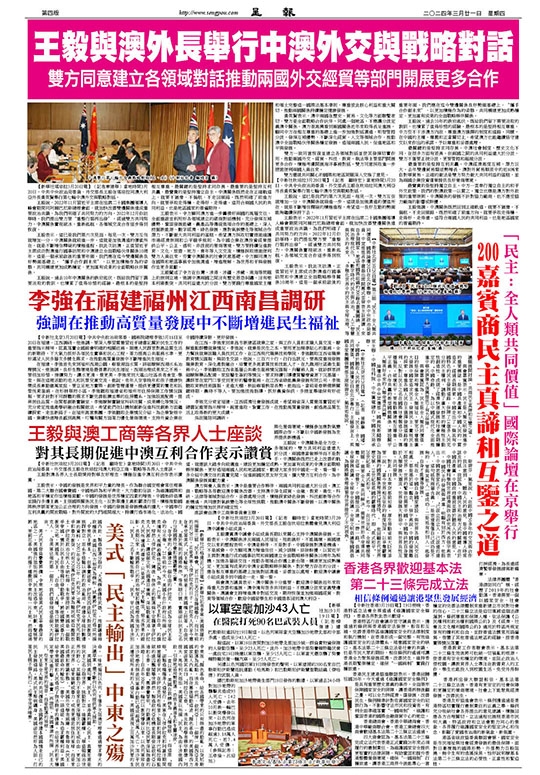 【中新社坎培拉3月20日電】(記者 顧時宏)當地時間3月20日,中共中央政治局委員、外交部長王毅在坎培拉同澳大利亞外長黃英賢舉行第七輪中澳外交與戰略對話。