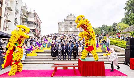 【特訊】由文化局、銀河娛樂集團、新濠博亞娛樂、美高梅、金沙中國有限公司、澳娛綜合度假股份有限公司及永利渡假村(澳門)股份有限公司聯合主辦的慶祝澳門回歸祖國二十五周年“2024澳門國際幻彩大巡遊”將於3月24日舉行,為祈願活動順利圓滿,各單位代表昨天(3月22日)在大三巴牌坊進行拜神儀式,並設醒獅及參與活動的藝團演出助慶,率先讓現場公眾感受大巡遊熱鬧氣氛,吸引眾多市民及旅客圍觀欣賞,氣氛歡愉。