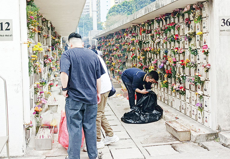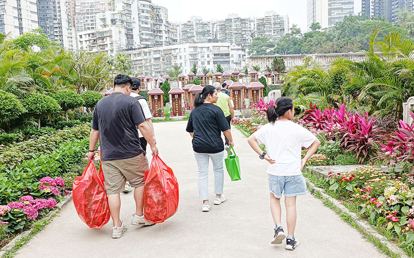 昨日清明節,不少居民一早到本澳墓園掃墓。早上九時許開始,新西洋墳場香火鼎盛,不少居民扶老攜幼到場拜祭先人,帶同鮮花、燒豬、香燭和冥鏹等祭品,亦有人帶備已故親人最愛食品,盡顯孝心。場內整體秩序良好。