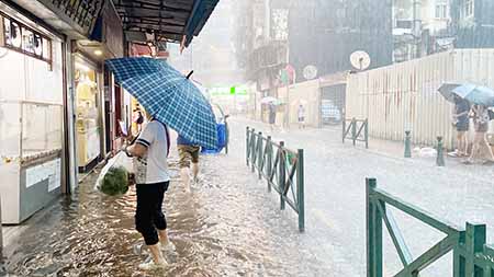 【特訊】氣象局昨日早上一度發出紅色暴雨警告信號,期間澳門半島錄得最高一小時雨量紀錄為六十五毫米,多區出現水浸;中、小、幼及特殊教育昨日停課;氣象局指出,持續優化相關預警及預報系統,盡力降低惡劣天氣對社會造成的影響;受一道低壓槽將於本週持續影響本澳,未來數日會持續有驟雨及雷暴,呼籲巿民出門前密切留意氣象局的最新天氣預報。
