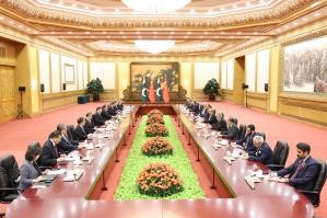 習近平指出,中國和巴基斯坦是山水相連的好鄰居、信義相交的好朋友,更是守望相助的好夥伴、患難與共的好兄弟。中巴全天候戰略合作夥伴關係不斷深化,擁有堅實的民意基礎、強大的內生動力、廣闊的發展前景。中方願同巴方堅定相互支持,拉緊合作紐帶,深化戰略協調,加快構建新時代更加緊密的中巴命運共同體,為地區和平、穩定、發展、繁榮作出更大貢獻。