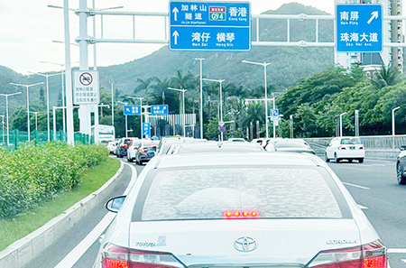 自從澳車北上、港車北上開放後,每逢節假日期間,港珠澳大橋口岸車流經常出現擠塞情況。以今年端午節為例,港珠澳大橋邊檢站統計,端午節三天假期 (八日至十日),經大橋出入境的旅客超過二十二萬人次,車輛超過四萬多輛次,創下口岸開通以來同期新高。數據顯示,端午假期經珠海公路口岸出入的港澳單牌車逾二點七萬輛次,佔口岸小客車總量的逾七成,佔比創歷史新高;而口岸通行的港澳旅客亦超過十六點四萬人次,較去年同期增長一點五三倍,其中,香港居民是大橋口岸通行量最高的群體,佔近五成半。
