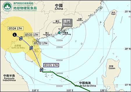 氣象局表示,於昨晚八時,熱帶風暴「派比安」正集結在澳門西南約五百六十公里處,以時速約十五公里向西北方向移動,大致趨向海南島。按現時路徑預測,「派比安」將於周一(今日)凌晨至早上,於海南島登錄,與本澳保持超過四百公里距離。
