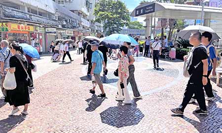 氣象局表示,昨日已發出橙色高溫提示,預料本澳天氣非常酷熱,預測七月二十五日(今日)的天氣,天氣酷熱、多雲、部分時間有陽光,稍後有幾陣驟雨及雷暴,氣溫約為攝氏二十七至三十五度,市區會再高一至兩度。七月二十六日的天氣,天氣酷熱、多雲、短暫時間有陽光,稍後有幾陣驟雨及雷暴,氣溫約為攝氏二十七至三十三度;展望本周後期至下周初,逐漸轉受一道低壓糟影響,本澳驟雨及雷暴增多。