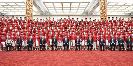 習近平指出,中國體育代表團的優異成績,將中華體育精神和奧林匹克精神發揚光大,讓中華民族精神和時代精神交相輝映,生動詮釋了新時代中國精神。賽場上,大家牢記黨和人民重托,“國家榮譽永遠超過個人”、“我的這塊金牌獻給偉大的祖國”等誓言擲地有聲,展現了祖國至上、為國爭光的赤子情懷,展現了頑強拼搏、自強不息的必勝信念,展現了團結協作、並肩作戰的寶貴品質,展現了中國青年一代自信樂觀、熱情友好的陽光氣質。你們讓全世界看到了中華優秀傳統文化的深厚積澱,看到了中國開放包容、昂揚進取的時代風貌,看到了中國人民的志氣、銳氣和底氣。祖國和人民為你們驕傲,為你們點贊。