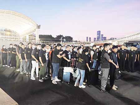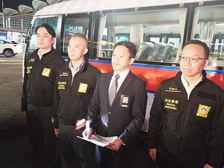 昨日下午六時,兩地警方在拱北口岸及澳門關閘之間的車道地點進行移交。現場所見,兩地警方合共派出多警員,換錢黨被鎖上手扣押上內地公安警車。司警局副局長蘇兆強表示,一直與內地合作打擊換錢黨跨境犯罪,今次在公安部統籌下,鎖定多個活躍兩地的換錢黨團夥成員身分。至昨日早上,公安部專案組聯動北京、河北、山西等十五個省市警方,與本澳司警局統一收網。