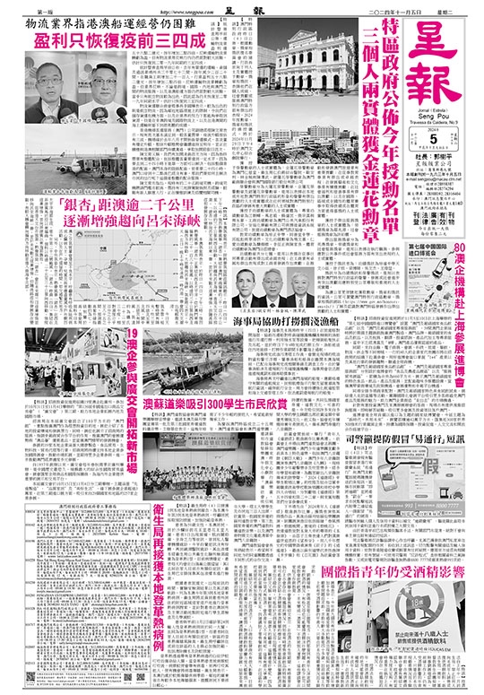 【特訊】澳門特別行政區政府昨日(4)日公佈,根據勳章、獎章和獎狀提名委員會的建議,行政長官向下列人士及實體授予勳章、獎章和獎狀,表揚他們在個人成就、社會貢獻或服務澳門特別行政區方面有傑出的表現。2024年度勳章、獎章和獎狀的頒授儀式,將於2024年11月29日下午4時於澳門文化中心綜合劇院舉行。