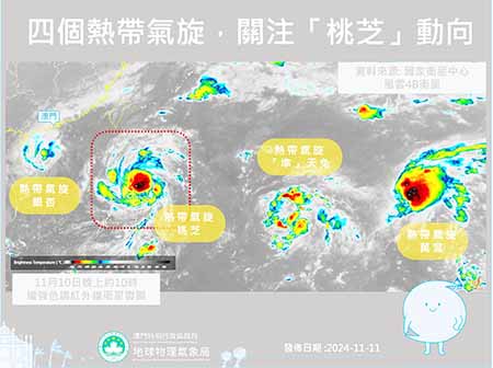 氣象局表示,近期的熱帶氣旋活動猶如接力賽,現時南海至西北太平洋一帶更同時存在四股熱帶氣旋;包括正逐漸消散的「銀杏」、即將到來的「桃芝」,以及較遙遠的「萬宜」及準「天兔」。