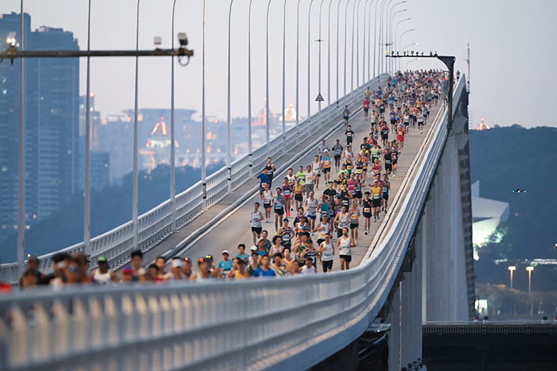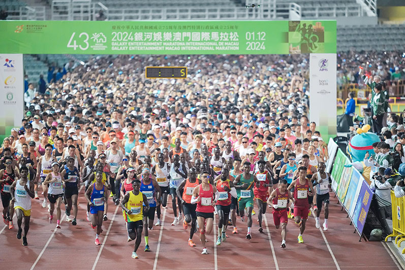踏入第43 屆的澳門國際馬拉松的馬拉松、半程馬拉松以及迷你馬拉松的路線均途經「澳門銀河™」綜合度假城,而馬拉松路線繼續途經嘉樂庇總督大橋及西灣大橋,全長42.195公里。賽事於上午六時展開,並由體育局局長張子軒、銀河娛樂集團企業事務董事林志成、澳門田徑總會理事長陳步倩、銀河娛樂集團首席營運總監-澳門祈嘉杰主持鳴槍起跑儀式。