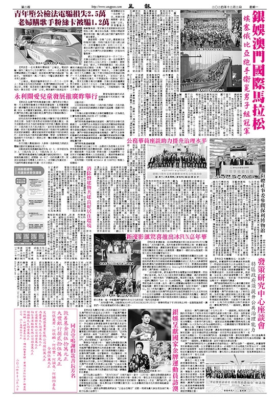 【特訊】由體育局、銀河娛樂集團及澳門田徑總會主辦的「慶祝中華人民共和國成立75周年及澳門特別行政區成立25周年 - 2024銀河娛樂澳門國際馬拉松」昨(1)日於奧林匹克體育中心運動場圓滿舉行,馬拉松男子全程組別,來自埃塞俄比亞的狄比尼勇奪冠軍,成功衛冕,女子全場組別由俄羅斯莫素娃封后;而王坤則贏得馬拉松澳門運動員男子組的冠軍,更刷新澳門紀錄,澳門運動員女子組冠軍由吳楊楊勇奪。