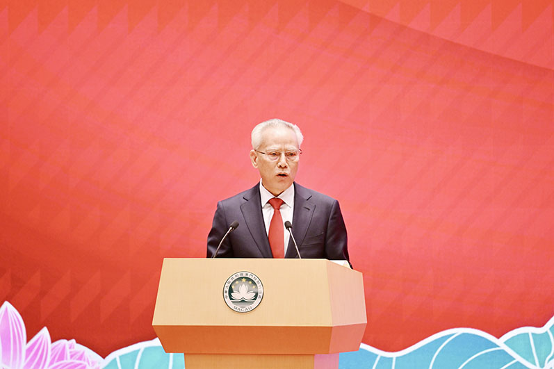 【特訊】特區政府於昨日下午在中葡綜合體舉行慶祝澳門特區成立二十五周年招待酒會,行政長官岑浩輝在會上致辭時稱,國家主席習近平視察澳門並發表系列重要講話,為澳門「一國兩制」實踐提出新要求、新部署,新一屆政府將帶領社會各界認真學習,貫徹落實習近平的講話精神,今後五年,將和其施政團隊團結帶領社會各界全力以赴,書寫具有澳門特色「一國兩制」成功實踐新篇章,為澳門更加美好的明天努力奮鬥。
