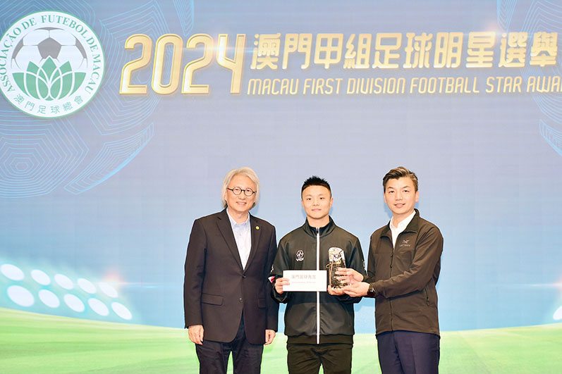 【特訊】由澳門足球總會、澳門體育頻道主辦,澳門體育記者協會協辦的「2024澳門甲組足球明星選舉」頒獎禮於2025年1月3日晚7時半假澳門漁人碼頭會議展覽中心舉行,在體育局局長張子軒、澳門足球總會副會長鍾國榮共同見證下,正式公布今屆「澳門足球生生」誰屬,最終由賓菲加隊長陳敏繼2016年後再奪此項殊榮,他同時獲得「最佳本地球員」及「最佳11人足球明星」,榮膺「三料」足球先生。