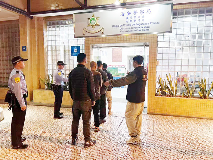 被捕的四名蒙古男子均無業,年齡介乎三十多至四十歲;四人本月六日一同來澳,分別涉及加重盜竊、吸毒被送交檢察院處理。案情指出,於本月七日,治安警表接獲一名男事主報案,指早前在新馬路某銀行自助櫃員機提款五千元人民幣,將其放入袋中,未幾,行至板樟堂街發現袋的拉鍊打開,袋內有關現金被盜。警員透過「天眼」發現涉案的四名蒙古男子,於當日下午一時許在玫瑰堂前地尾隨事主至板樟堂街,其中三人靠近事主落手扒竊,另一人把風,得手後迅即四散,並企圖在附近再扒竊另一男途人不果。