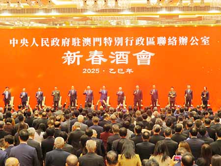 一月十六日(昨日)下午,中央政府駐澳門聯絡辦公室舉辦二零二五年新春酒會。受國務院港澳事務辦公室主任夏寶龍委託,國務院港澳事務辦公室副主任、中央政府駐澳門聯絡辦公室主任鄭新聰出席並致辭,代表夏寶龍主任、國務院港澳事務辦公室和中央政府駐澳門聯絡辦公室向澳門同胞致以新春祝福。澳門特別行政區行政長官岑浩輝出席並致辭,全國政協副主席何厚鏵,前行政長官崔世安、賀一誠,外交部駐澳門特派員公署特派員劉顯法,解放軍駐澳門部隊司令員于長江、政委林慶華,中央政府駐澳門聯絡辦公室副主任黃柳權、呂玉印、張應傑,以及特別行政區政府主要官員,特別行政區立法、司法機構主要負責人,澳區全國人大代表、全國政協委員,特別行政區行政會委員、立法會議員,以及澳門社會各界代表人士一千二百多人出席酒會。