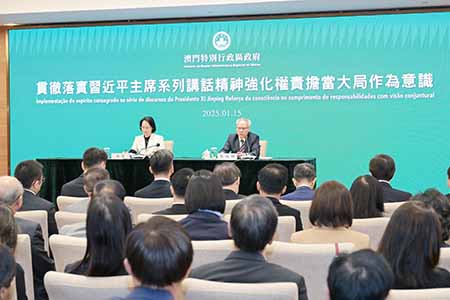 最後,岑浩輝指出,中央政府和習主席對澳門特區給予了高度的讚揚和肯定,對特區政府的工作帶來最大支持和鼓勵,但大家不能因此而感到滿足和懈怠,應前瞻思考、預先謀劃、主動作為、奮發同行、銳意進取,一起開創特區工作的嶄新局面。