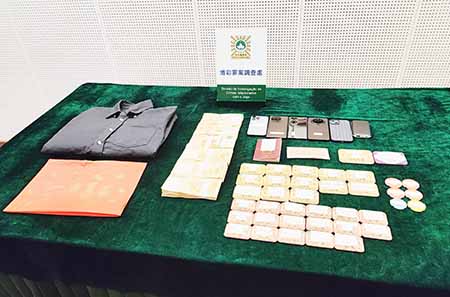 【特訊】司警破獲一個以電投方式「賭底面」的犯罪集團,拘捕三名內地男子,包括一名骨幹。該集團在過去半年於路氹某賭廳用手機偷拍直播賭局,收受內地賭客網上投注,涉及「檯面」投注額七十九萬港元,「檯底」涉款五百三十六萬港元。行動中,司警扣押逾九十四萬港元籌碼、現金以及犯罪工具,正追緝至少十多名在逃人士的下落。
