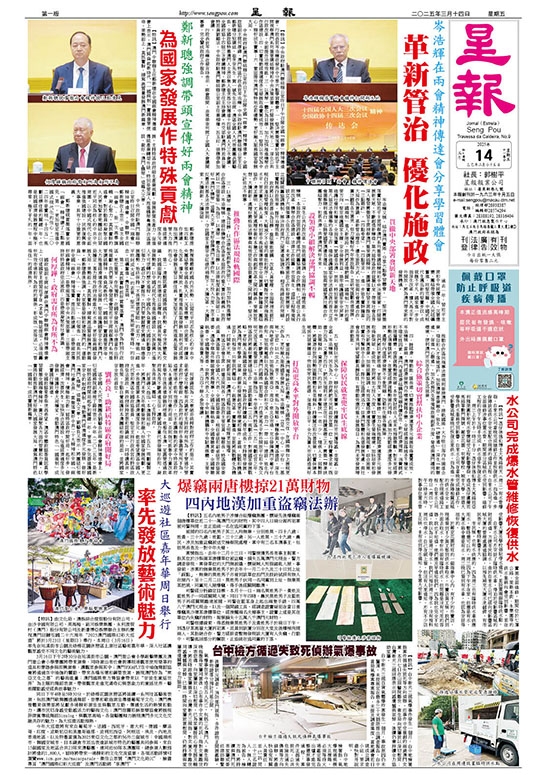 【特訊】中央政府駐澳門聯絡辦公室昨日下午召開全國「兩會」精神傳達會。行政長官岑浩輝在發言中分享六點學習體會,一、堅決貫徹落實好習近平主席視察澳門系列重要講話精神和中央決策部署,打開發展新天地;二、深化公共行政改革,全面提升治理效能,三、以澳琴一體化為目標,加力加快推進橫琴合作區建設;四、切實推動經濟適度多元發展取得實質成效;五、堅持以市民為中心,辦好民生實事;六、鞏固提升澳門獨特地位和優勢,更好融入服務國家發展大局。