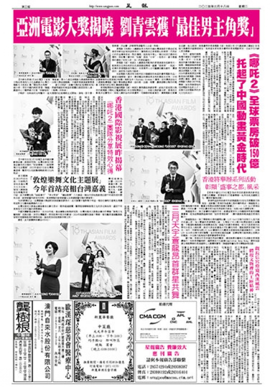 【中新社香港3月16日電】(記者 韓星童)第十八屆亞洲電影大獎頒獎典禮16日晚在香港西九文化區戲曲中心舉行,16項大獎逐個揭曉。中國香港演員劉青雲憑藉影片《爸爸》獲“最佳男主角獎”。 當日15時許,距離大獎的紅毯環節尚有2個小時,來自中國內地和香港、韓國、美國等國家和地區的媒體已提前排隊入場,戲曲中心二樓擠滿了扛著“長槍短炮”(相機)的粉絲。