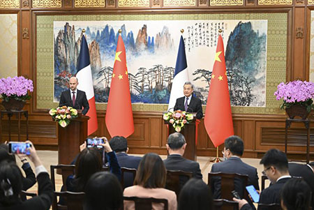 一是密切溝通協調。辦好戰略、經濟財金、人文交流三大高級別對話,適時舉行議會定期交流機制會議,用好兩國外交部間磋商機制,深入溝通、增進理解、凝聚共識。尊重彼此核心利益是中法戰略互信的基石,中方讚賞法方重申堅定奉行一個中國政策。