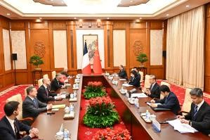 巴羅積極評價法中務實合作成果,表示當前國際局勢不確定性增多,保護主義上升,法中關係的重要性更加凸顯。雙方有必要加強戰略協調,發揮大國作用,維護世界和平穩定。法方始終視中方為重要夥伴,堅定奉行一個中國政策,致力於發展面向未來、長期穩定的法中關係。法方支持自由貿易,不贊成脫鉤斷鏈,反對打貿易戰,願通過高品質對話,超越差異和分歧,開展平等互惠合作,擴大雙向投資,豐富人文交流,增進人民友好,增加雙邊關係中的積極議程。