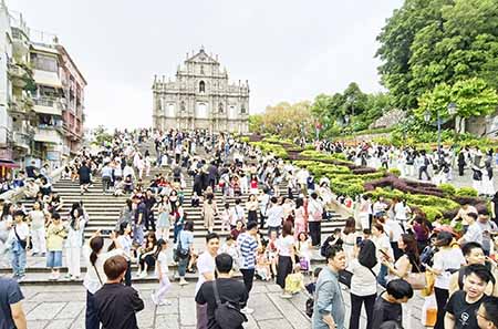 治安警察局表示,今年五一假期首天,全澳出入境總數共73.1萬人次,入境旅客近17.7萬人次。橫琴口岸(澳方)刷新了單日入境和出入境總數的最高紀錄,分別為5.6萬和10.4萬人次。而昨日是五一黃金周假期第2天(2日),治安警公布,截至昨日晚上9時,本澳各口岸有 72.4萬人次出入境,其中入境旅客逾21.5萬人次,主要經關閘口岸通關,其次是橫琴口岸及港珠澳大橋,出境旅客則有16.2萬人次。
