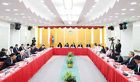 下午,夏寶龍由行政長官及行政法務司司長張永春陪同,在政府總部與本澳多個愛國愛澳社團的代表座談,就高質量建設愛國愛澳社團、齊心協力加快經濟適度多元發展和橫琴粵澳深度合作區建設、團結開創具有澳門特色“一國兩制”成功實踐新局面深入交流。