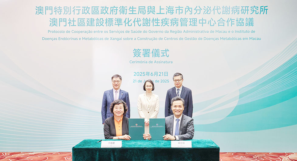 此外,在柯嵐、寧光和萬速成見證下,羅奕龍與上海交通大學醫學院附屬瑞金醫院內分泌代謝科主任王衛慶共同簽署了《澳門社區建設標準化代謝性疾病管理中心合作協議》,進一步促進澳門特別行政區慢性病管理的標準化,強化基層醫療服務能力及深化區域醫療合作。