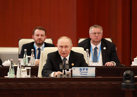 五是堅持務實高效。持續推進上海合作組織改革,加強資源投入和能力建設,讓組織機制更完善、決策更科學、行動更高效,為成員國安全和經濟合作提供更有力支撐。