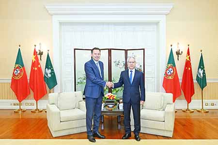 他強調,中葡兩國人民友誼源遠流長,歷久彌堅,中葡建立全面戰略夥伴關係20年,尤其注重在中葡交流合作中更好發揮澳門平台的作用。澳門作為世界上唯一以中文和葡文為官方語言的地區,在中葡兩國的大力支持下,通過承辦“中國—葡語國家經貿合作論壇”及訂定深化雙方各領域合作的舉措,致力打造“中國與葡語國家商貿合作服務平台”,助力深化中葡友好關 係。展望未來,他深信在中葡兩國領導人的關心、指導和幫助下,澳葡雙方一定可以不斷深化互信合作,增進友好交往,更好造福人民,推動雙方交流合作邁上新台階。