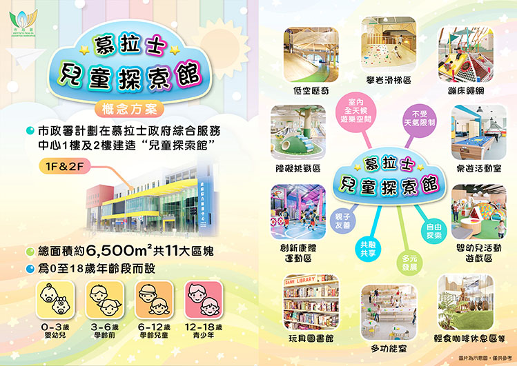 【特訊】市政署計劃於剛投入運作的慕拉士政府綜合服務中心的一樓和二樓,建造面積約六千五百平方米的兒童探索館,期望打造親子友善的社區共享空間,爭取在 二零二八年底完工啟用。