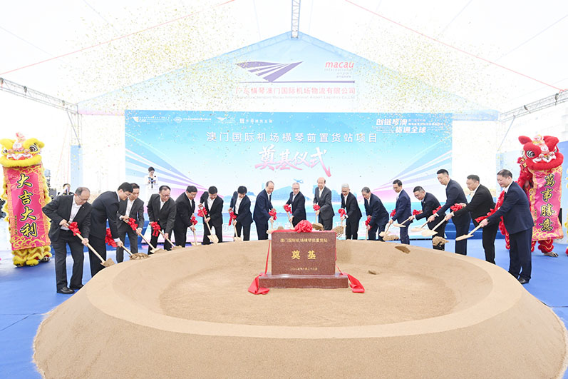 澳門國際機場橫琴前置貨站奠基儀式在橫琴舉行。行政長官岑浩輝、中聯辦主任鄭新聰、外交部駐澳特派員劉顯法、經濟財政司司長、橫琴粵澳深度合作區執委會副主任戴建業、運輸工務司司長譚偉文等出席。戴建業致辭表示,橫琴前置貨站的建設,會將澳門機場安檢、打板、貨運集散等工作,前置延伸至橫琴深合區,同時藉助橫琴海關監管便利的措施,形成澳門機場與橫琴貨站之間無縫對接,實現粵澳進出口貨物的快速互聯互通。
