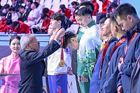 澳門代表隊郭建恆、方文浩及鄭沘珞四連勝主場奪冠,是澳門在今屆全運會的首面獎牌。三人表示,很高興在「屋企門口」 奪得金牌,感謝入場打氣的澳門市民,以及特區政府和體育局的支持。其中郭建恆稱,個人的體育生涯步入尾聲,能在不同的大型賽事贏得獎牌,已達成運動員的目標,將繼續與隊員一同備戰明年(二零二六年)在日本舉辦的亞運會,持續為特區而戰,以澳門運動員身份衝擊任何成績和獎牌。