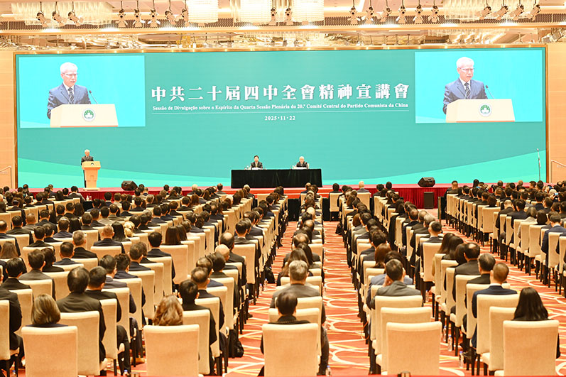 鄭新聰表示,特區管治團隊是落實中央決策部署、對接國家發展戰略、促進澳門長期繁榮穩定的關鍵力量,希望管治團隊以這次宣講會為契機,團結帶領社會各界學習宣傳全會精神,深刻把握“十五五”時期促進澳門長期繁榮穩定的重要任務和重大機遇,緊扣“十五五”規劃建議擘畫的發展藍圖,主動對接國家發展戰略,充分發揮澳門獨特優勢和重要作用,更好融入和服務國家發展大局;牢牢把握“十五五”時期重大機遇,科學編製特區“三五”規劃,推動特區各項事業穩步發展,有力促進澳門長期繁榮穩定,不斷開創“一國兩制”事業發展新局面。