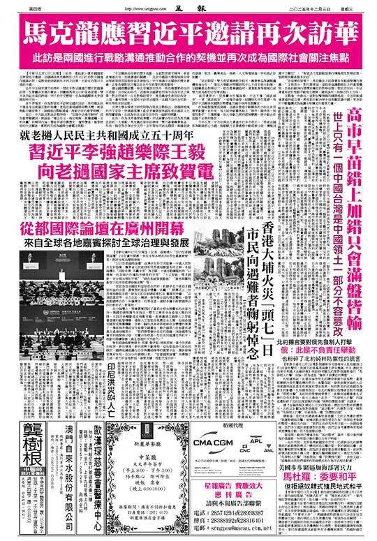 星報首頁 | 昔日新聞 | 各項專版 | 廣告業務 | 報社簡介 | 澳門日記