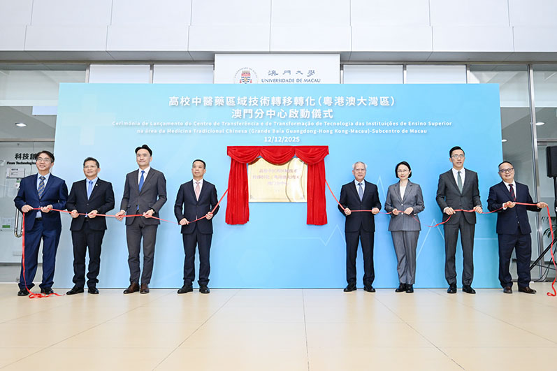 高校中醫藥區域技術轉移轉化(粵港澳大灣區)澳門分中心分別於澳門大學及粵澳中醫藥合作科技產業園舉行啟動儀式。行政長官岑浩輝、中聯辦副主任黃柳權、深合區執委會主任戴建業、社會文化司司長柯嵐等出席。
