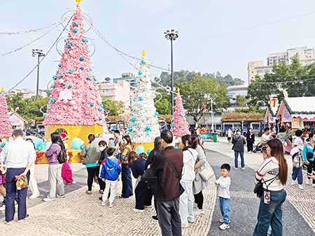 而中區大三巴及議前亭前地一帶人流如湧,吸引不少旅客遊覽,各手信店門庭若市,有手信店表示,雖然未到聖誕節正日,但回歸日適逢周末,連日生意暢旺,不少內地旅客光顧,生意較平日增加,希望聖誕節前後有更多生意;而正在塔石廣場舉行的聖誕市集亦人流不絕,不少家長帶同小朋友到場欣賞聖誕樹及玩耍現場遊戲設施,同時吸引不少旅客在現場「打卡」,有售賣紀念品的檔主稱,連日生意理,相信平安夜及除夕夜,人流及生意會更多。