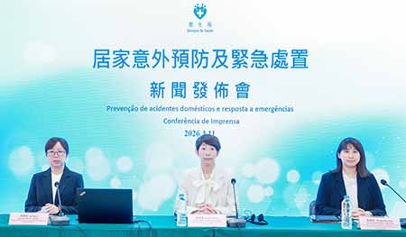 【特訊】為落實《健康澳門藍圖》所訂定的總體目標和指標,貫徹“關口前移、資源下沉、觀念轉變”三大政策方向,特區政府透過“健康社區” 計劃持續開展多元化社區健康科普活動,致力提升居民健康素養與促進自我健康管理能力。衛生局於昨(11)日舉行“居家意外預防及緊急處置”新聞發佈會,介紹居家意外預防方法和院前處置,以及公佈3月14日“健康社區快閃站"活動安排等。衛生局仁伯爵綜合醫院急診部主治醫生楊佩儀、疾病預防及控制中心高級技術員黃嘉欣、青洲衛生中心專科護士葉家宜出席了發佈會。